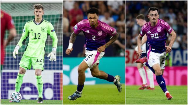 达门是美因茨青训球员,也是2021年U21欧青赛冠军队的一门,当时的队友包括了此次也有入选国家队的维尔茨、阿德耶米和劳姆。同样首次入选的内贝尔是达门的同门师弟,这位身高只有1.69米的进攻型中场曾租借到德乙卡尔斯鲁厄锻炼了两年,上赛季回归后得到了丹麦主帅亨里克森的重用,交出了31场10球4助攻的德甲成绩单,因此在德国U21队的位置竞争中后来居上,成为欧青赛上的主力左边锋人选。加时赛2比3惜败于英格兰的决赛,正是内贝尔的一传一射,帮助德国队在90分钟内挽回了两球劣势。